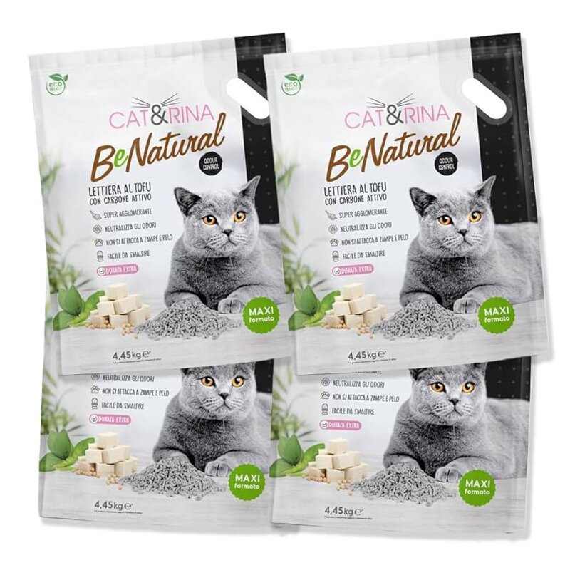 Acquisto di 4 sacchetti da 10 litri di Lettiera Vegetale al tofu con carbone attivo non profumata. (prezzo singolo sacchetto € 12,90)